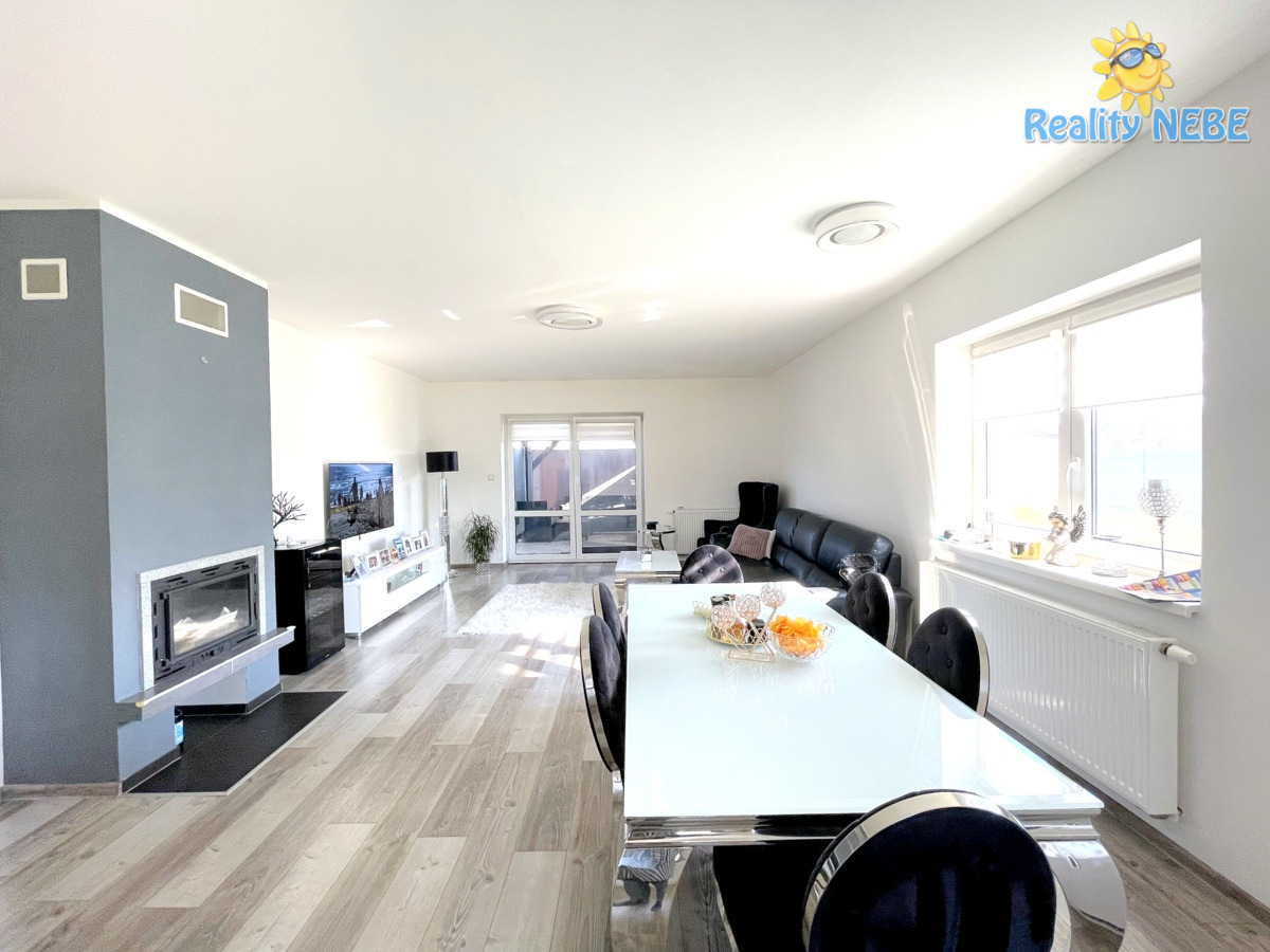 Prodej rodinného domu, se zastavěnou plochou 134m2, pozemkem 762m2, v ulici U Remízu v Předboji. Dům je samostatně stojící, přízemní novostavba. Je dispozičně řešen jako 4+kk, 2x koupelna + 2x venkovní garáž stání + terasa + zahradní domek, nově zbudovaný dřevník, zastřešený gril a příprava na letní bazén. Dům se nabízí včetně nového vybavení, viz. foto. Vstupní chodba s dlažbou, vestavnými skříněmi se zrcadly, toaleta se sprchovým koutem. Dále je prostorná chodba, kde jsou na míru také zhotoveny vestavné skříně se zrcadly. Z chodby vcházíte do jednotlivých samostatných neprůchozích pokojů. Ložnice s dvoulůžkem, křesílky, nočním stolkem, pokoj s dvoulůžkem, kosmetickým stolkem, další pokoj slouží jako šatna, zde jsou také vestavné skříně. Mezi jednotlivými pokoji je prostorná koupelna s rohovou vanou, toaletou, pračkou, umyvadlem, žebrovým topením. Naproti vcházíte do obývací části spojenou s kuchyňským koutem. Kompletně moderně vybavená rohová kuchyň s oknem a vestavnými spotřebiči. Lednice s mrazákem, myčka, el. trouba, indukce, digestoř, mikrovlnka, dřez a samostatná spíž s okénkem, kde je umístěn i elektrický kombinovaný kotel na ohřev vody a tepla v domě. Kuchyň a obývací část je propojena luxusním jídelním stolem s výhledem na terasu i krb. Krbová kamna jsou krásnou dominantou společenské části domu, který do domova přinese očekávané příjemné teplo. Z obývací části vstoupíte přímo na zastřešenou terasu s možností otevření jednotlivých zástěn, kudy projdete na prostornou zahradu. Technické zázemí a zahradní nářadí řeší nově postavený zahradní domek u domu, kde je přívod elektřiny a menší dílna. Zde najdete uskladnění pro veškerá potřebná sezóní zařízení. Dům je v perfektním stavu, kompletně luxusně vybaven novým nábytkem k pohodlnému užívání celé rodiny, v oknech sítě proti hmyzu, moderní rolety den/noc ve všech oknech, vinylové podlahy, internet, TV. Kolem pozemku je kačírek, předzahrádka je designově upravena. Dům je v bezprostřední blízkosti Prahy - východ. Zděný, samostatně stojící dům v rohové zástavbě je vystavěn na rovinatém pozemku o rozloze 762m2, tato rozloha poskytuje ideální poměr zahrady a soukromí. Zateplený dům má zámkovou dlažbu, elektrická posuvná vrata k vjezdu na pozemek, nově vybudovaný přístřešek pro garážové stání několika aut. Výborná dostupnost do centra Prahy, zastávka MHD 300m, bus na metro Ládví. Krásný, nový moderní přízemní dům, přesvědčte se na prohlídce.